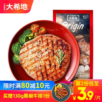 大希地 牛排 限时一天满80减10,第2份低至3.9元/片