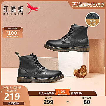 红蜻蜓英伦中帮男士马丁靴