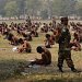 他们之所以要求1千多名申请人脱得只剩内裤、坐在空旷户外考试,是为了防止他们在衣服里或桌椅底下藏有任何小抄。