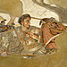记录佩戴面具的祭祀的彩色石膏被人打碎,丢失了关键的一小块。